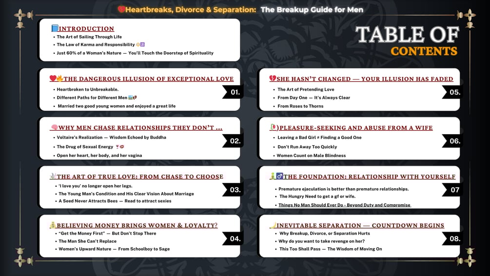 ⚡ Decode the hidden spiritual and psychological forces behind breakups, divorces, and emotional chaos — wisdom that most men never uncover in their entire lives.